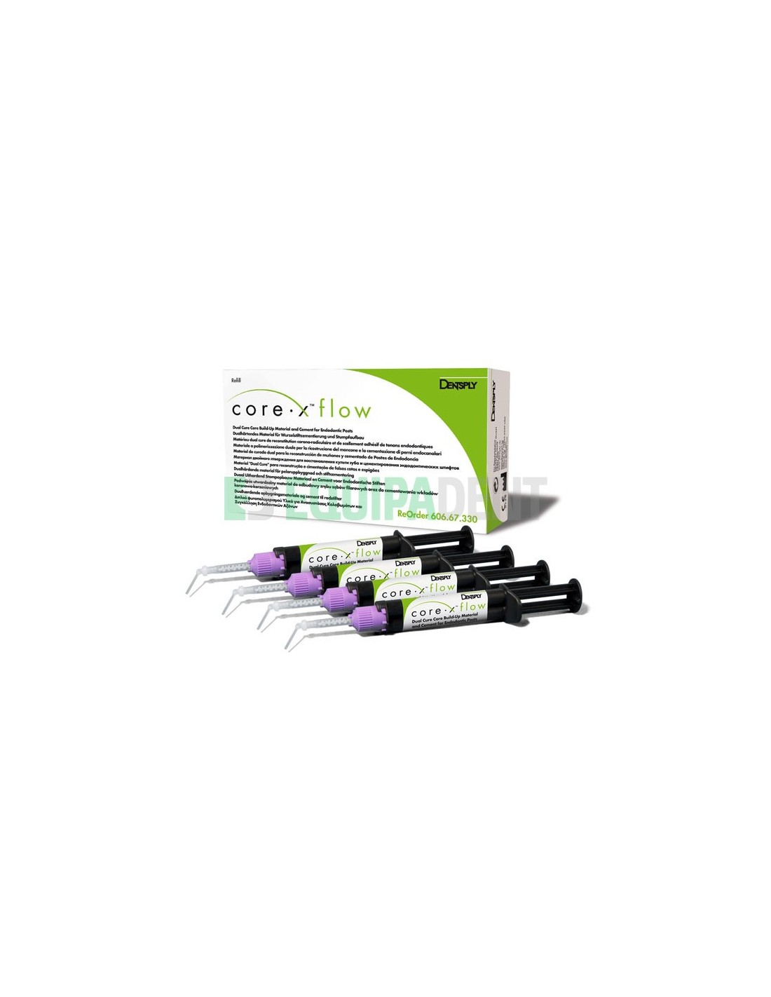 Core x flow es una pasta de dos componentes, base y catalizador que cuando se mezclan forman un composite de resina de curado dual para cementación y reconstrucción de muñones. Corex flow usa una resina biocompatible de uretano y su color es similar al color del diente, lo que es ideal para restauraciones en las que la estética es prioritaria.
